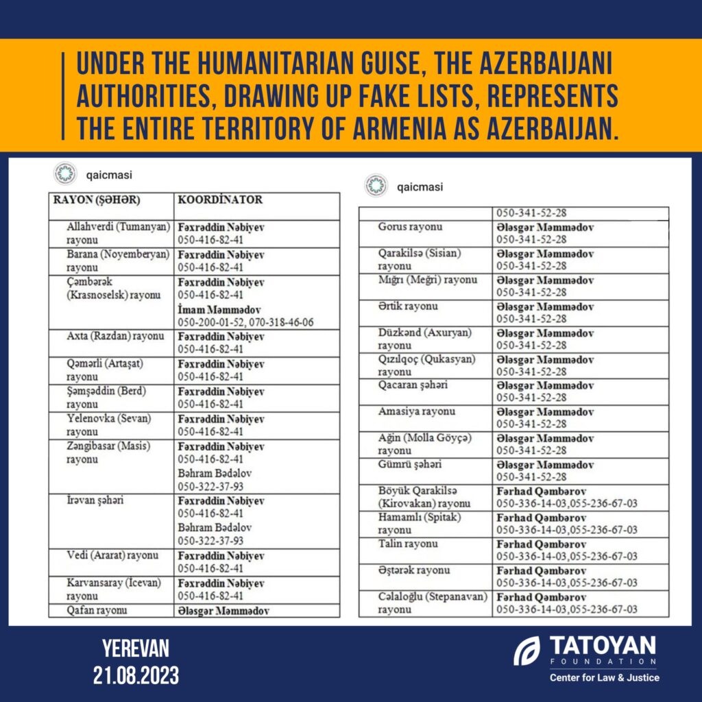 Под прикрытием гуманизма власть Азербайджана, составляя лживые списки, представляет всю территорию Армении как Азербайджан.